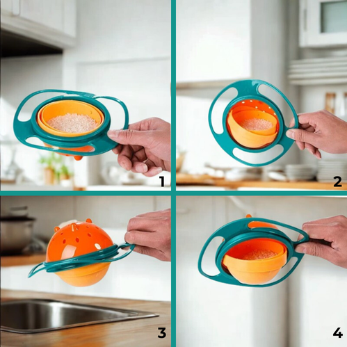 Fini les repas renversés ! Grâce à son système rotatif à 360°, ce bol magique reste toujours droit, même quand bébé le tourne dans tous les sens. Parfait pour apprendre à manger seul sans salir la maison !
